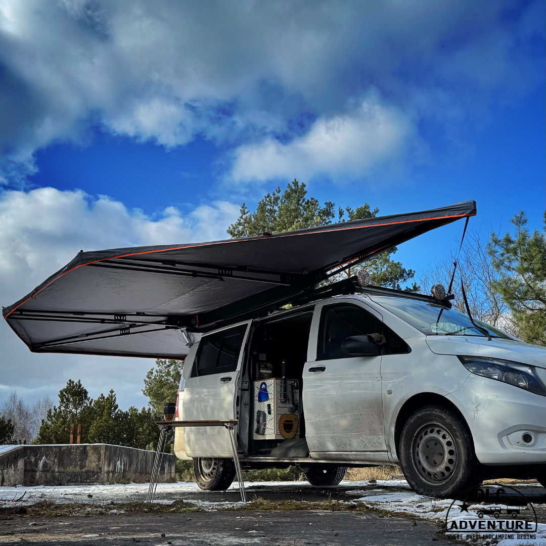Die 270° Markise freitragend 2,5m Xtended gibt es für links- und rechtsseitige (Fahrer- oder Beifahrer) Montage.