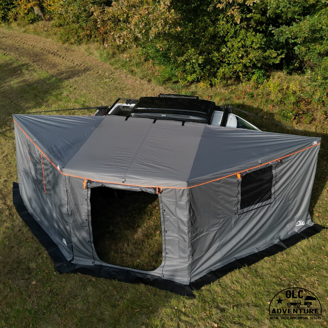 das Set bietet Schutz vor Wind, Regen, fremden Blicken und Insekten – ideal für die freitragende Markise.