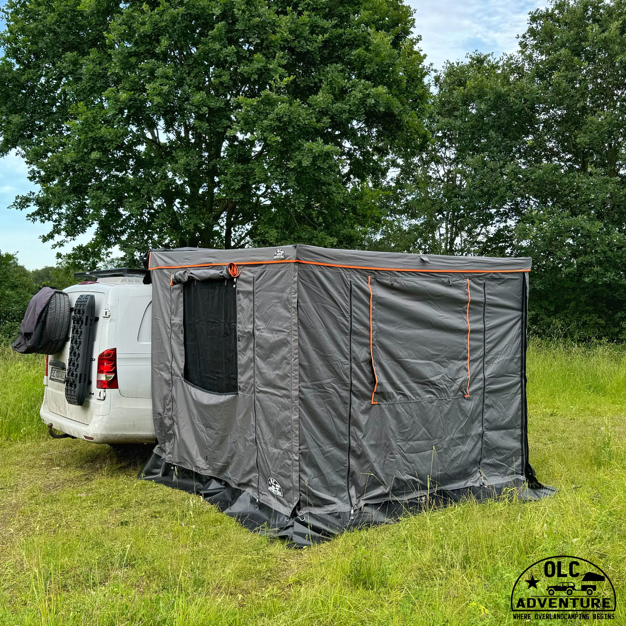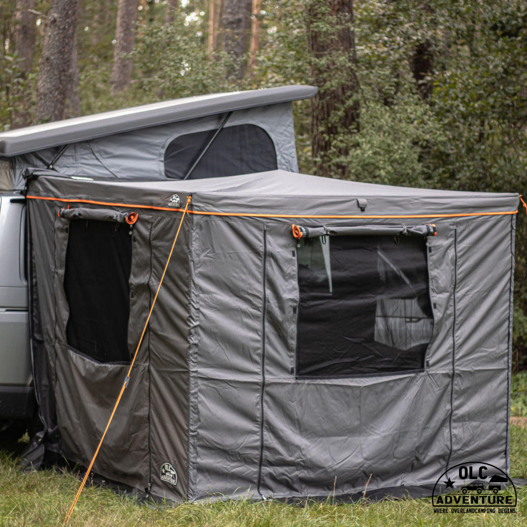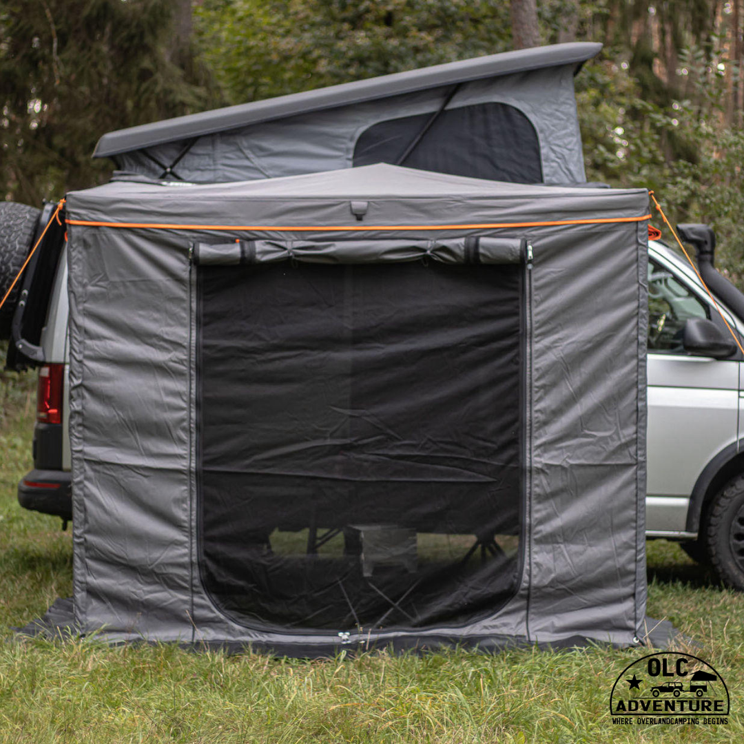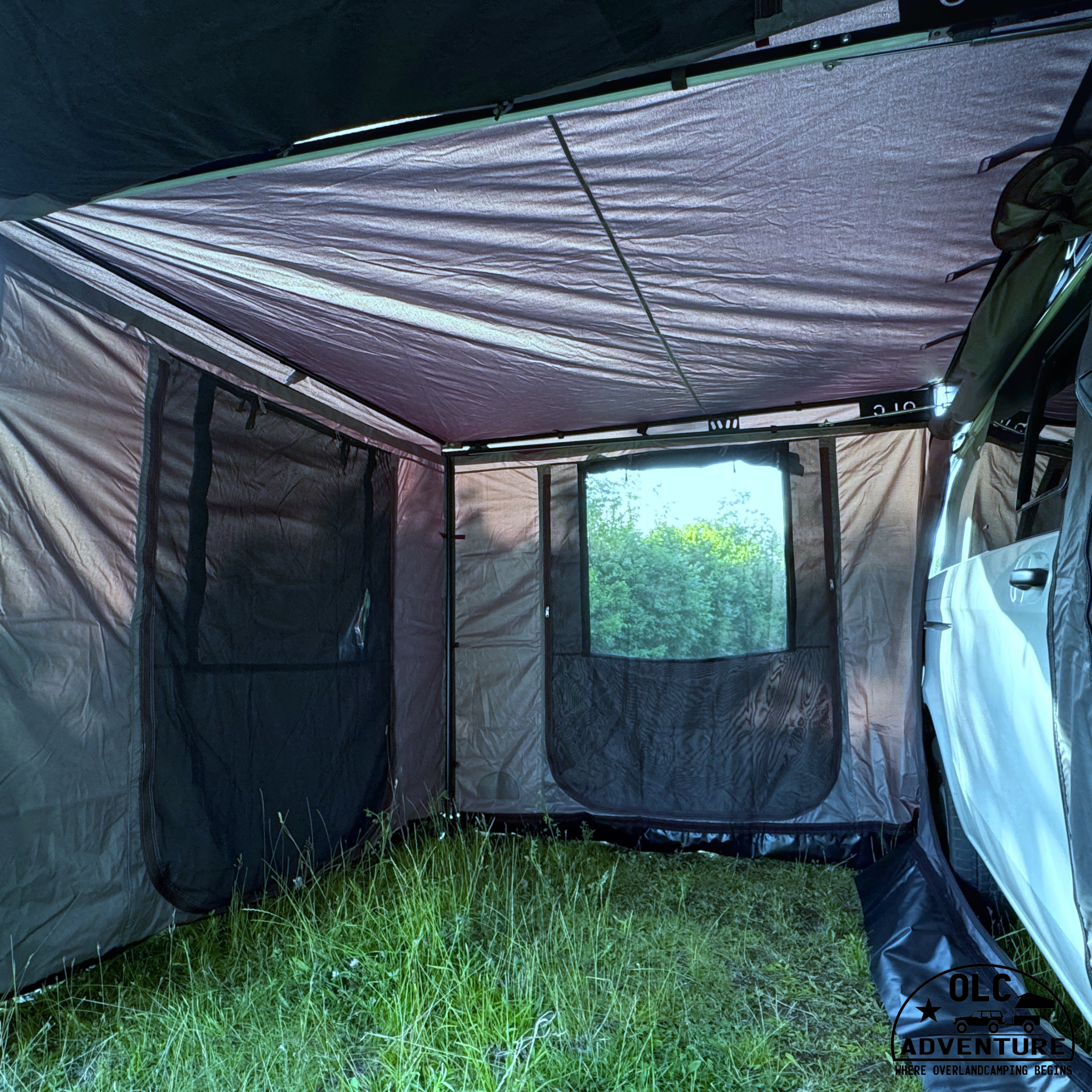 Ringsum hat man Zugang zu seinem „Vorzelt“, und die äußerlichen Seitenwände verfügen über je 1 Fenster, welches man von außen öffnen kann.
